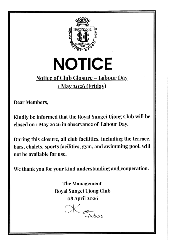 Dear Esteemed Members of the Royal Sungei Ujong Club,